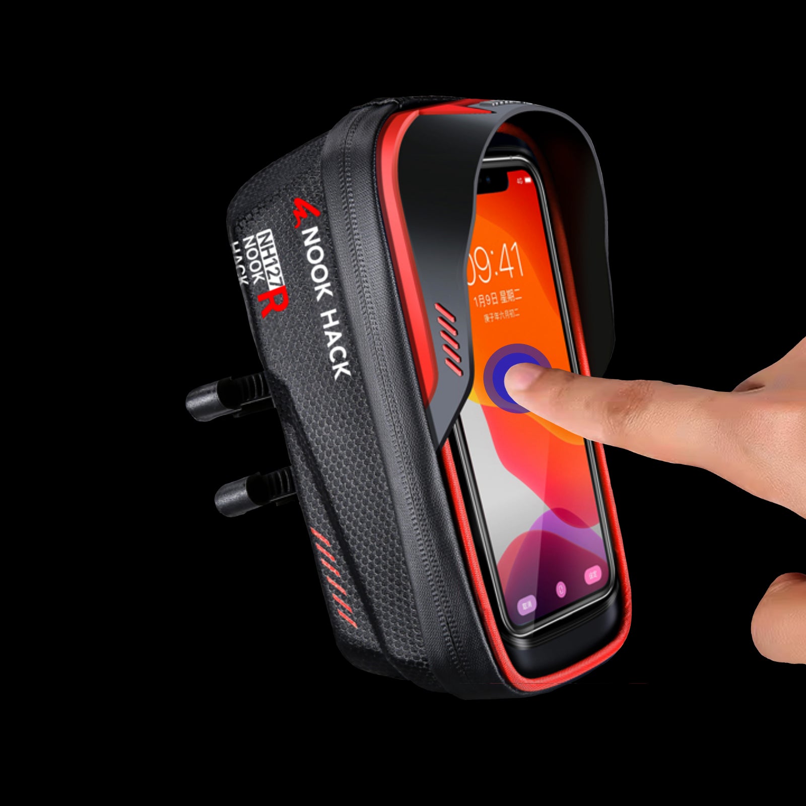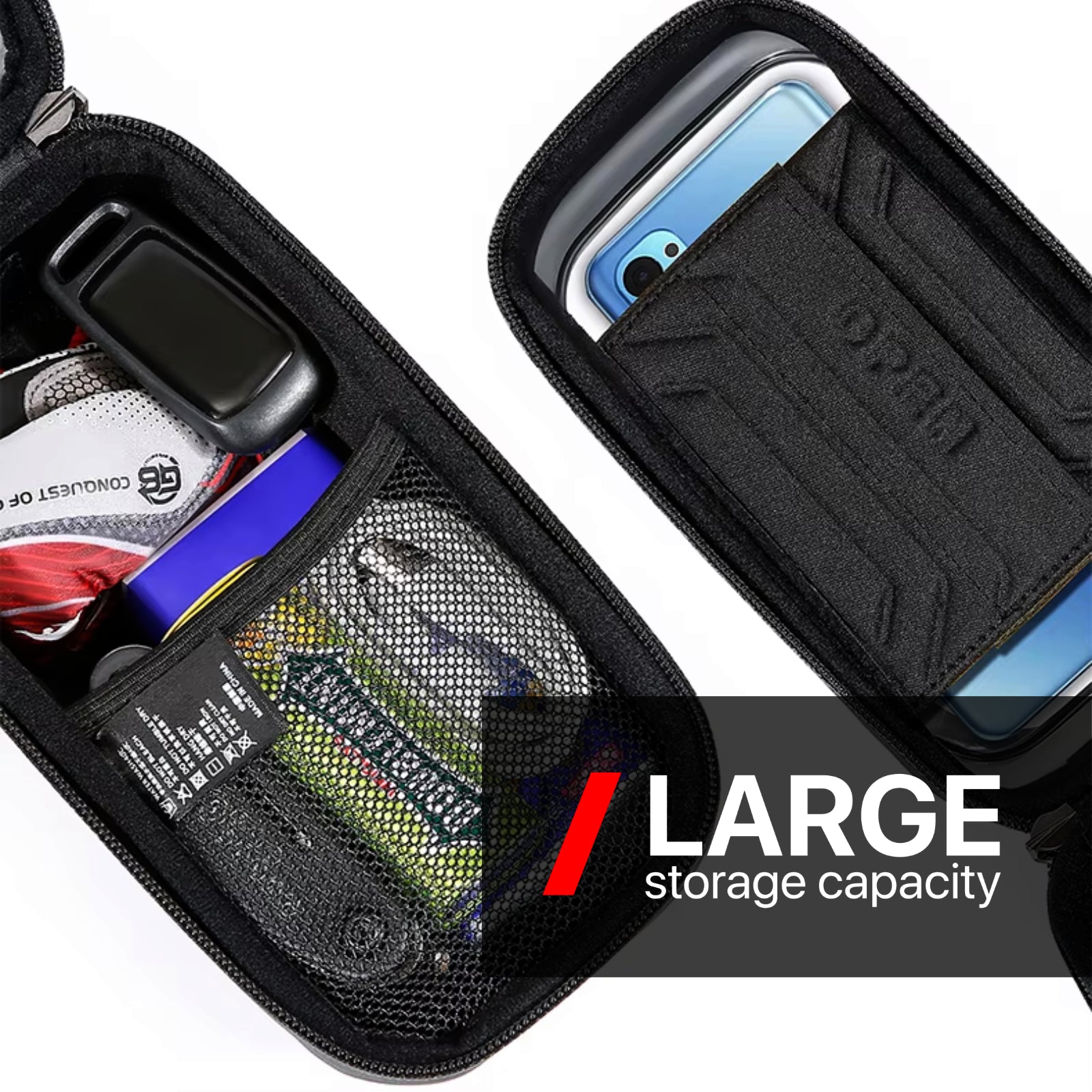 Made from tough, waterproof materials, it keeps your belongings dry and protected in all weather. It installs in seconds, stays stable while you ride, and gives you easy access with a clear, touch-friendly pocket for your phone.