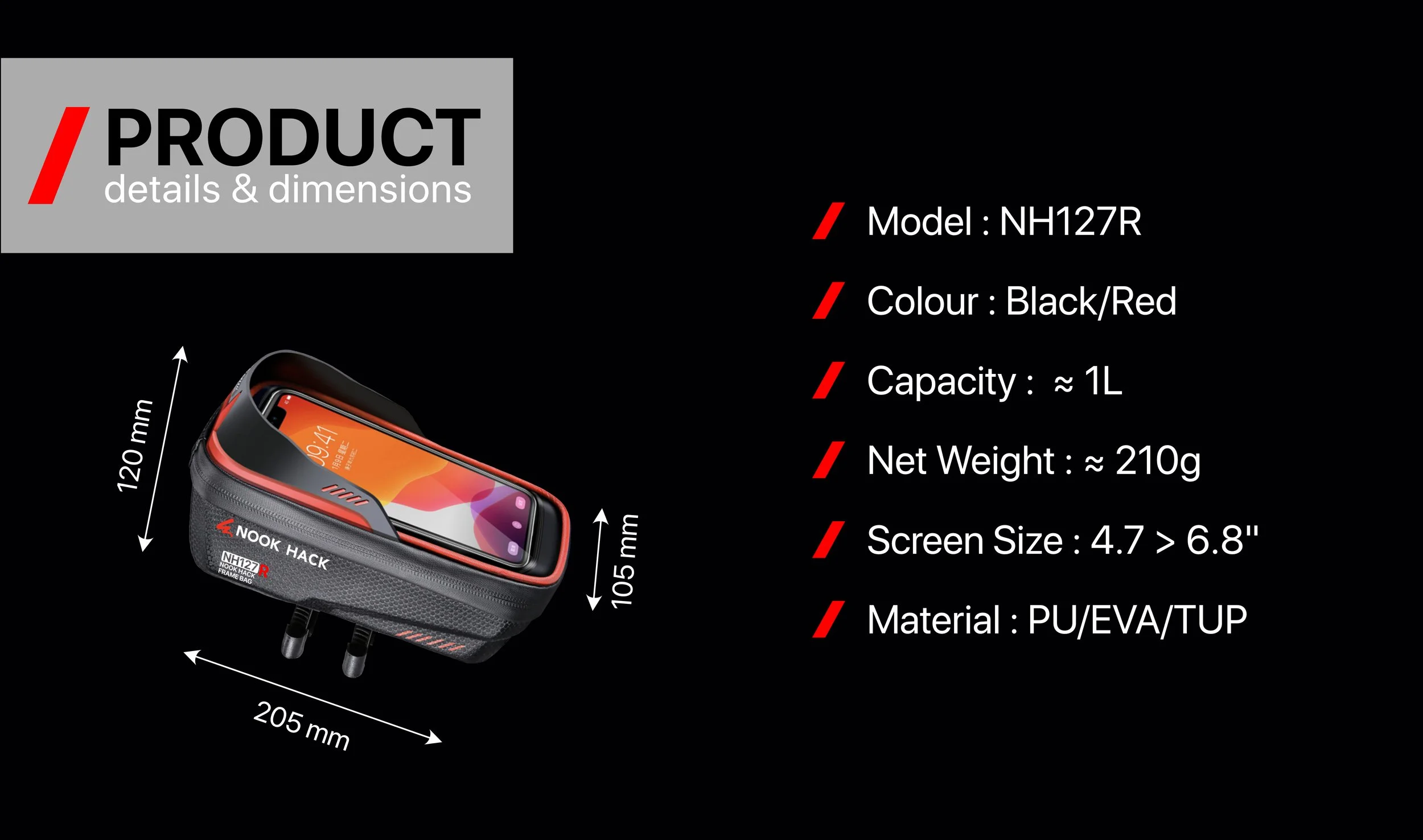 Quality Material: The Nook Hack cycling phone holder for bike bag is designed with a cool, curved sun visor. The construction is a mimic Carbon fibre outer body and tough EVA trim. The bike top tube bag will look stiff, dynamic and stylish at any time.